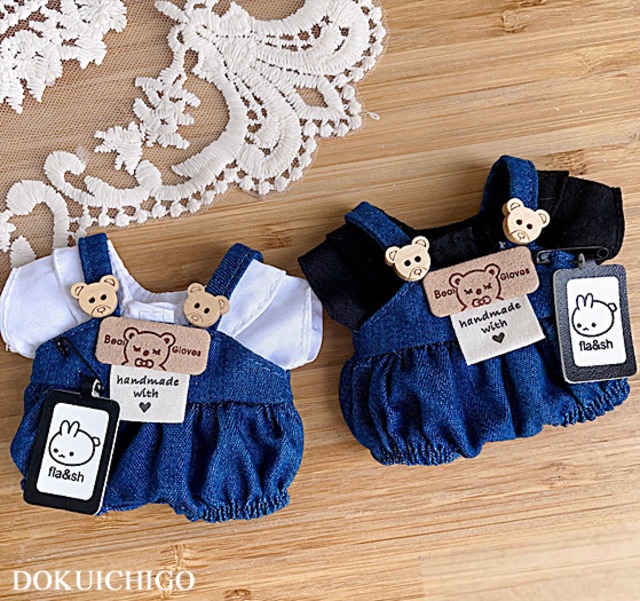 ぬい服 10cm 猫ロゴ オーバーオール ぬいぐるみ服 推し活【otg-63】
