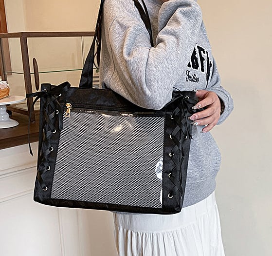痛バッグ 痛バ 編み上げ 手提げ トート オタク A4 缶バッチ 推し活 鞄 【bg-46】