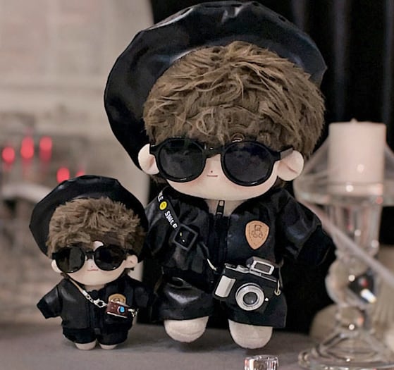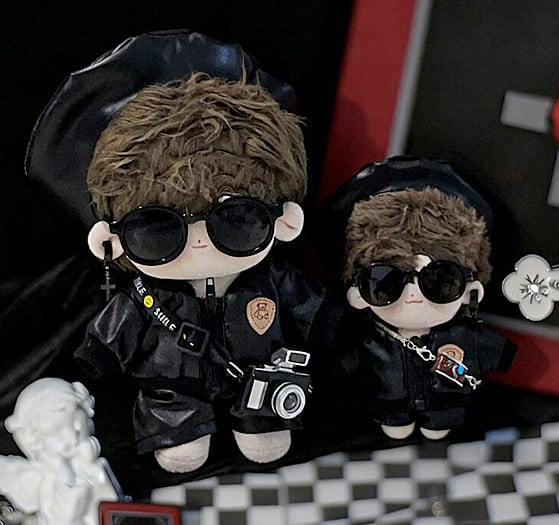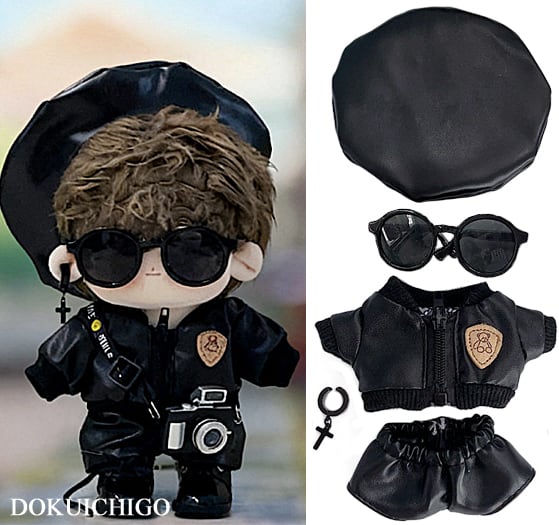 ぬい服 10cm レザージャケット セットアップ ベレー帽 ぬいぐるみ服 推し活【otg-70】