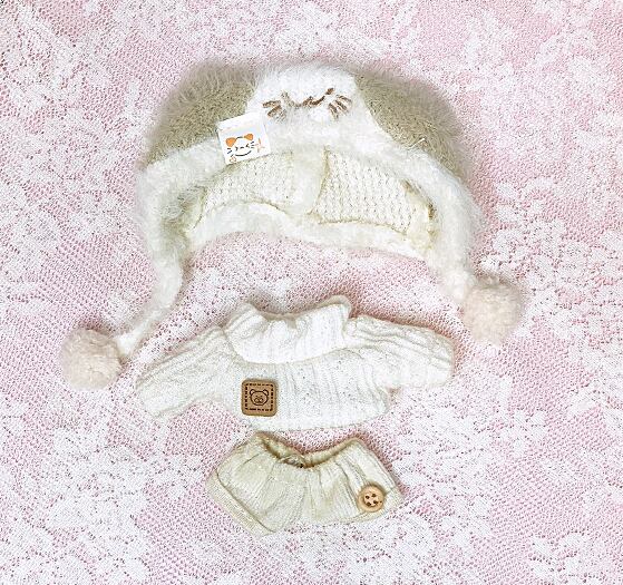 可愛いもこもこネコ耳帽子のぬい服♪