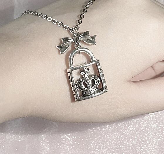 ネックレス 王冠 レディース メンズ アクセサリー クラウン 南京錠 地雷系 ゴシック【necklace-18】