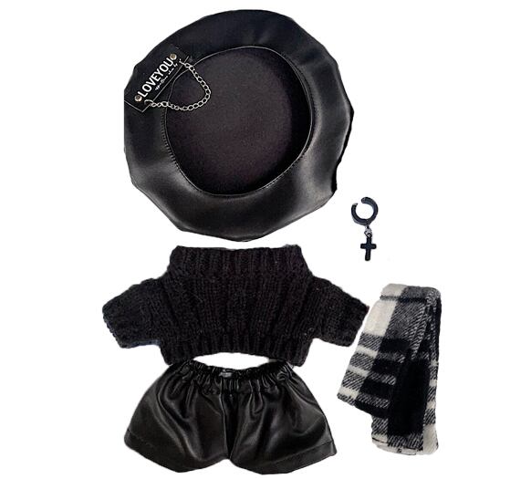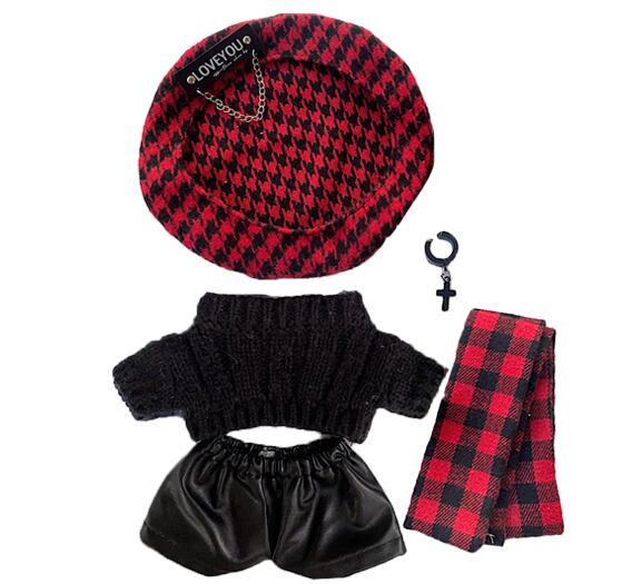 ぬい服 10cm ベレー帽 ニット レザーパンツ チェック マフラー ぬいぐるみ服 推し活【otg-72】