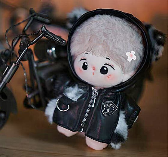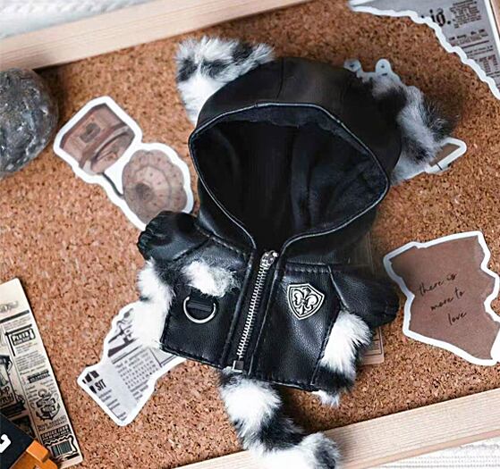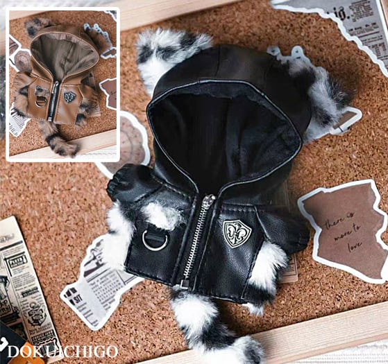 ぬい服 10cm ファー耳フード レザージャケット パンク ぬいぐるみ服 推し活【otg-73】