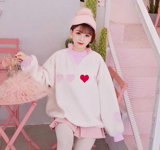 韓国 ボア トレーナー ゆめかわ レディース 長袖 オルチャン 原宿系 ハート もこもこ【tb-430】