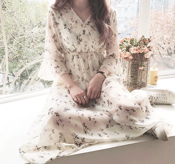 韓国ファッション シフォン ロング ワンピース 半袖 レディース 花柄 オルチャン 夏【tb-521】
