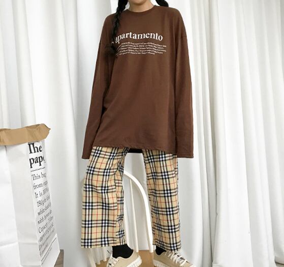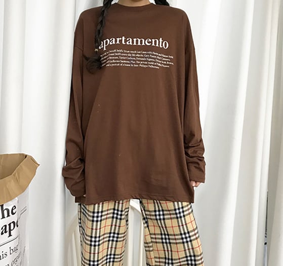 シンプルカジュアルでお洒落なかわいいブラウン長袖ロンT♪