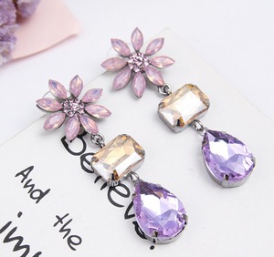 ピアス レディース 韓国 キラキラ 花 ストーン ビジュー アクセサリー ぶら下がり フラワー【pierce-60】